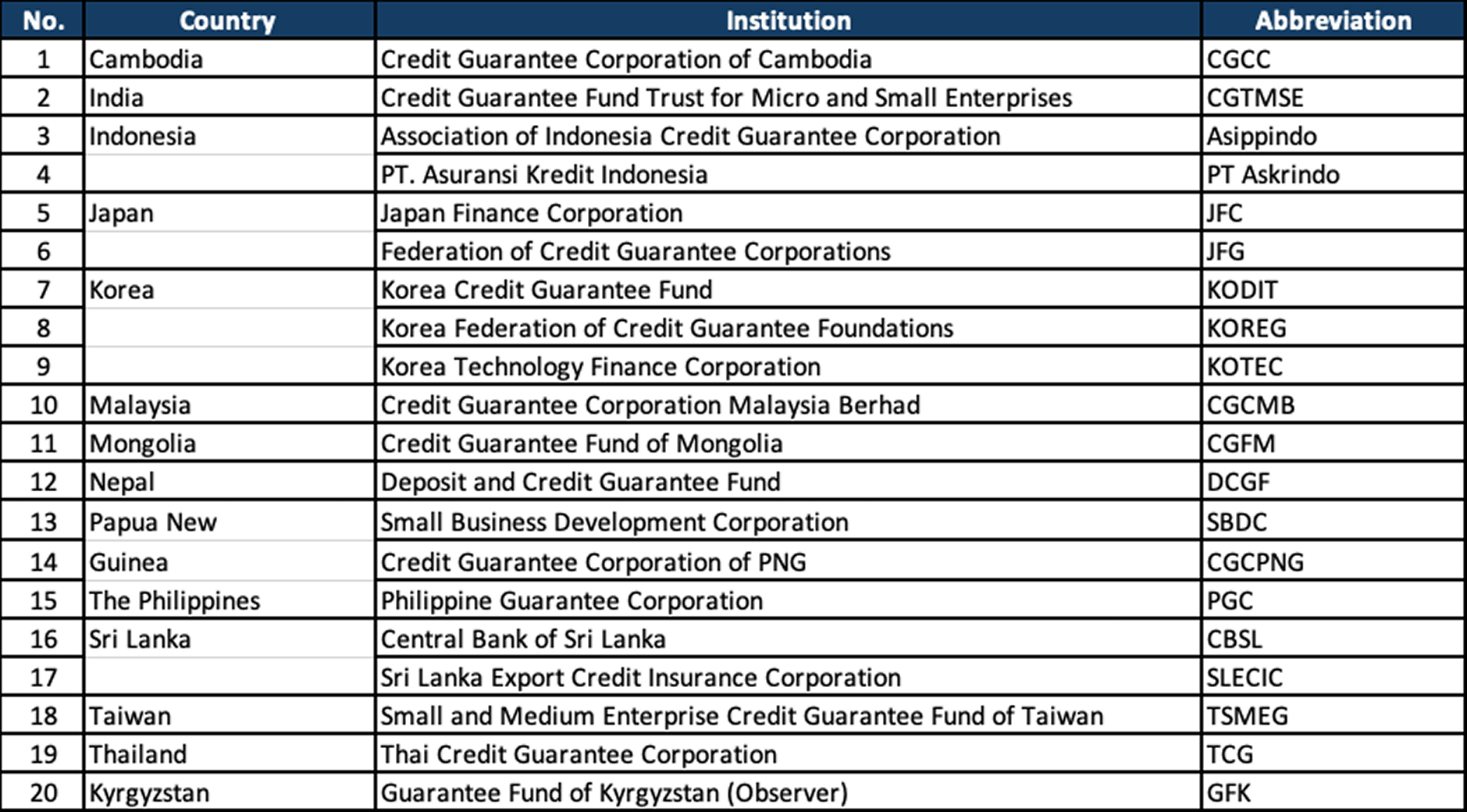 Asian Credit Supplementation Institution Confederation (ACSIC) is the cooperation of Asia’s credit guarantee organizations established in 1987. It is the largest organization designed for credit guarantee, which is participated by 19 credit guarantee institutions of 13 Asian countries, including Cambodia.